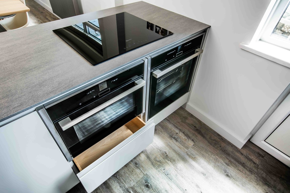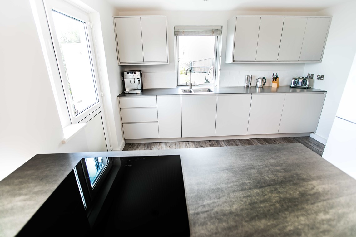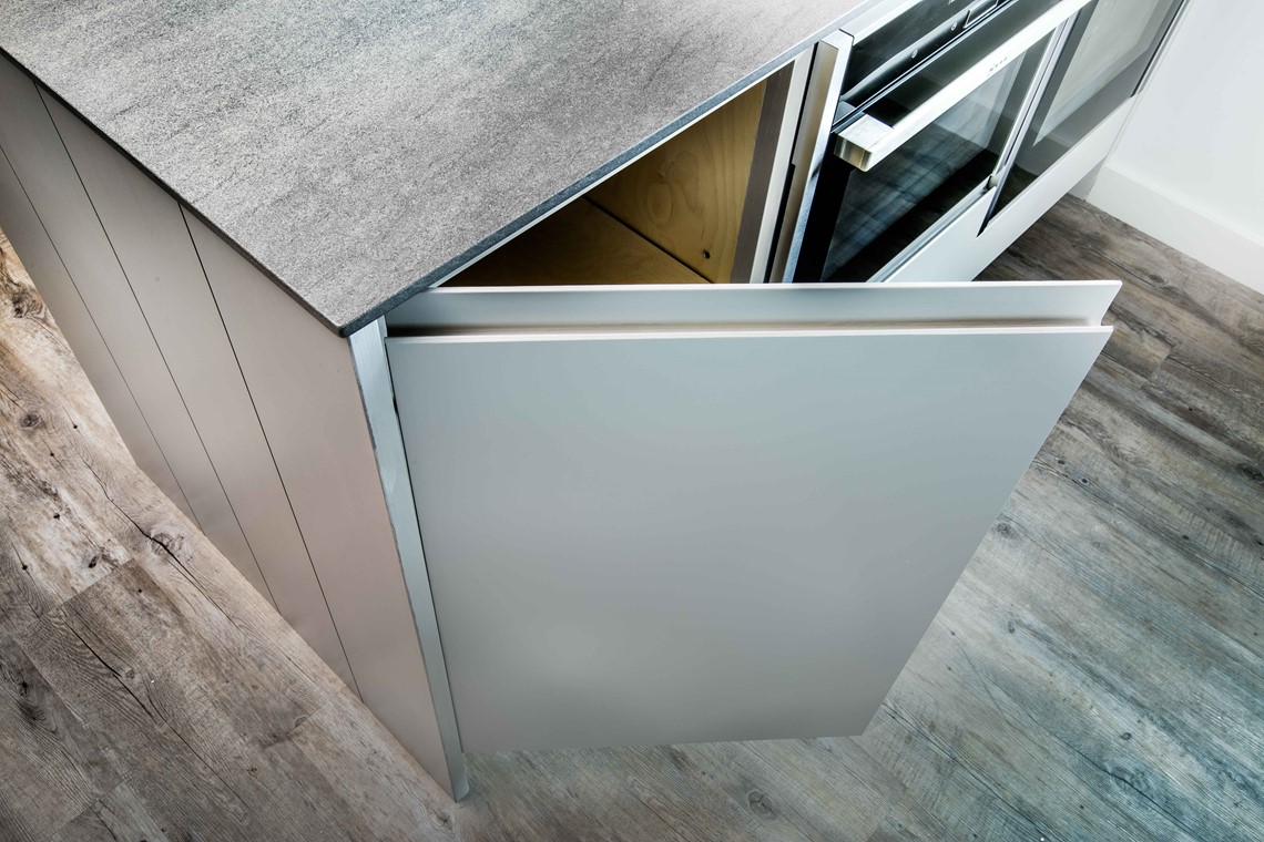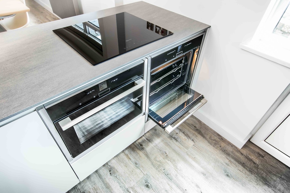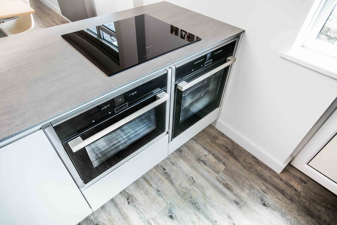 This modern kitchen is minimalist in style, and perfect for a busy family. Elegant, contemporary, and super-easy to look after, it also has adjustable shelves that allow you to easily change the configuration of your kitchen.