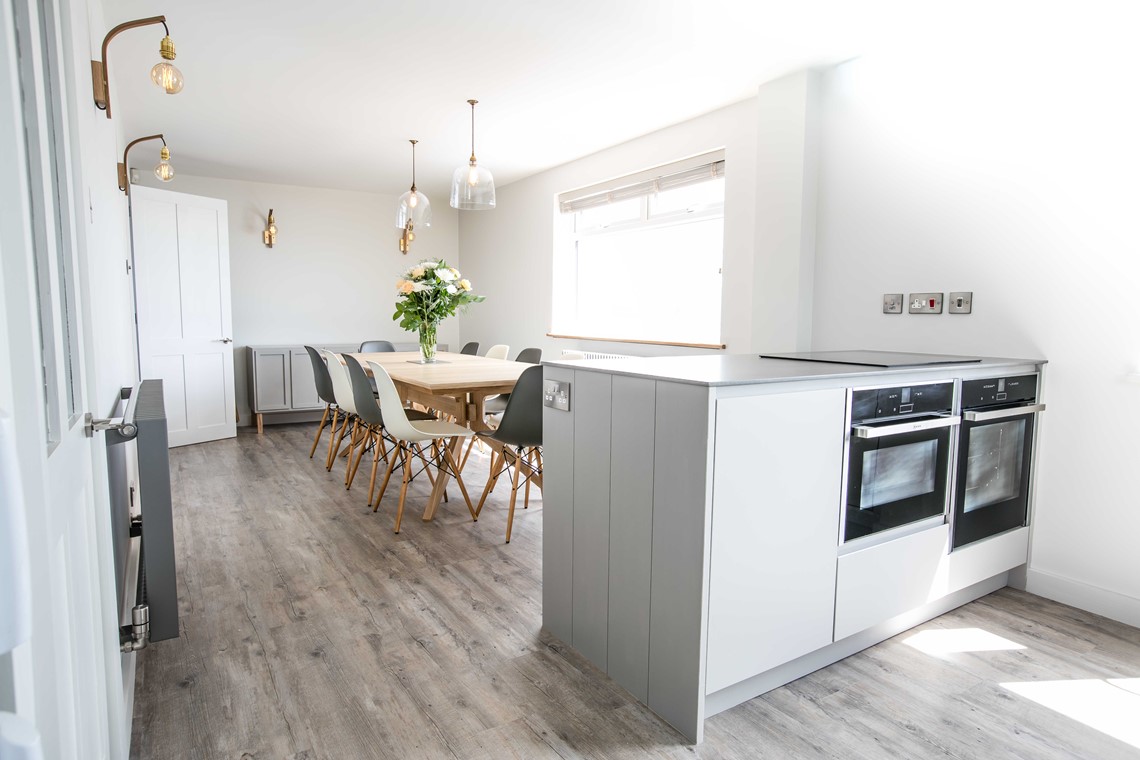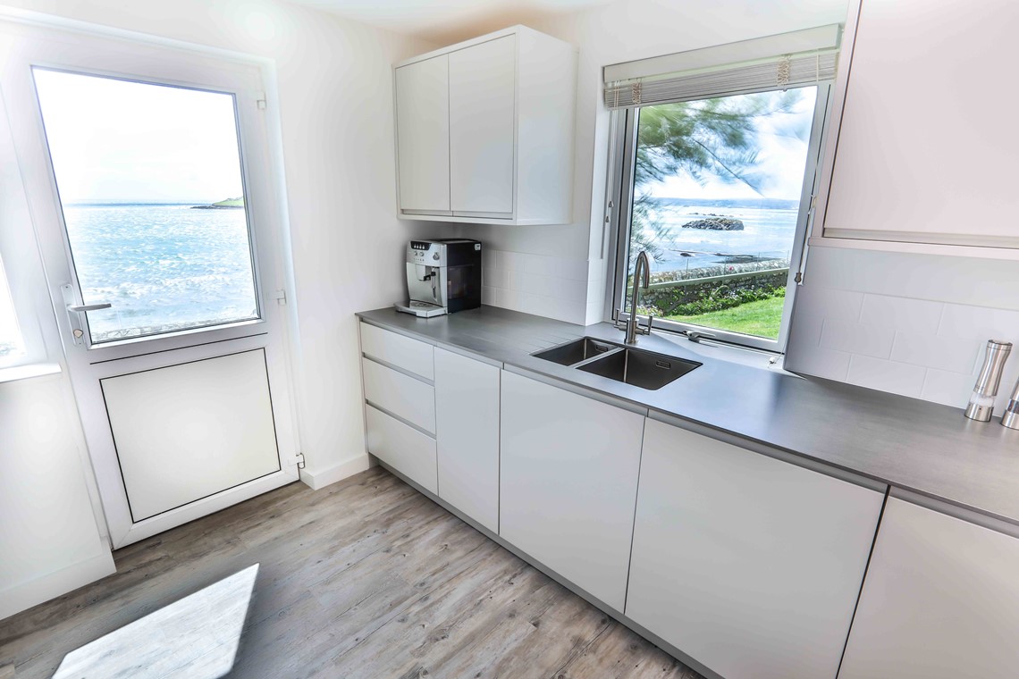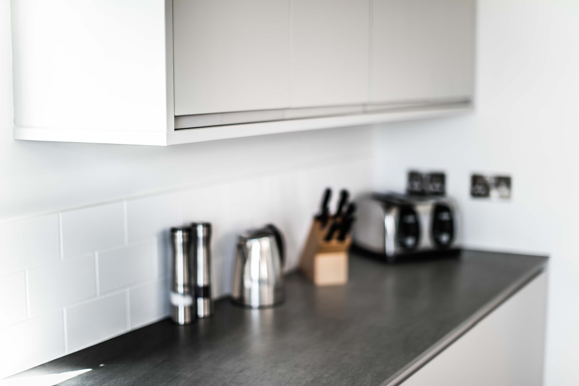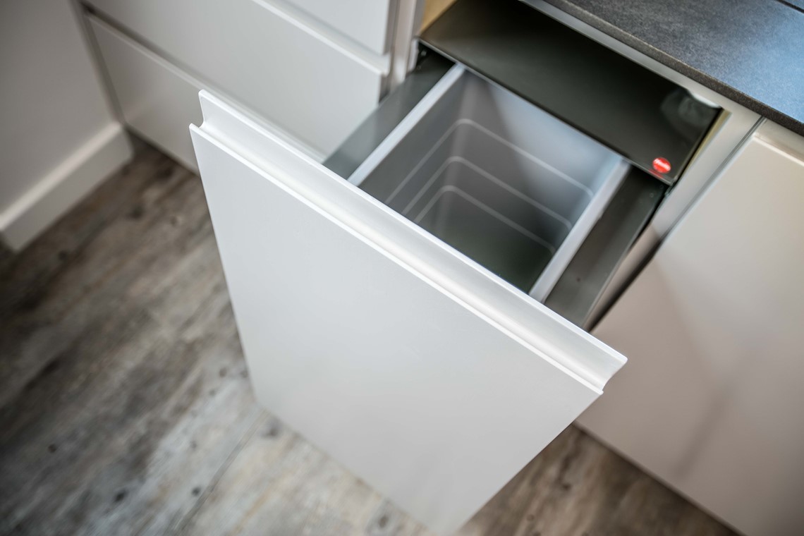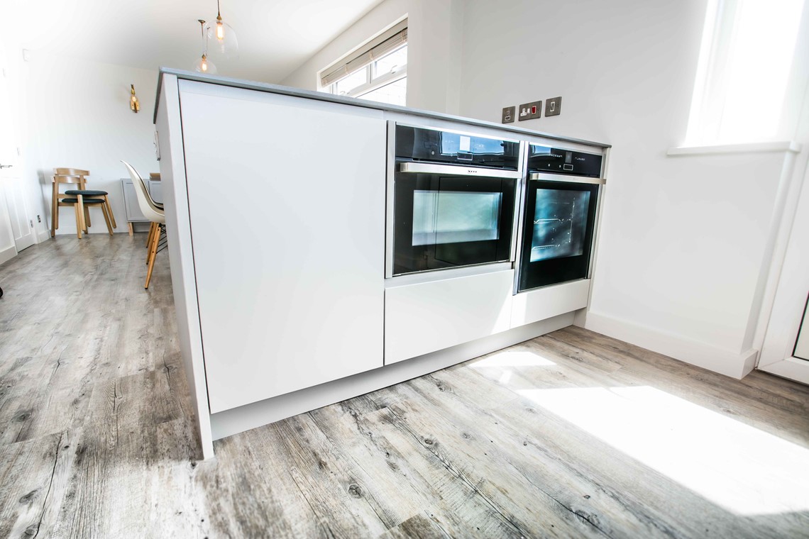 This modern kitchen is minimalist in style, and perfect for a busy family. Elegant, contemporary, and super-easy to look after, it also has adjustable shelves that allow you to easily change the configuration of your kitchen.