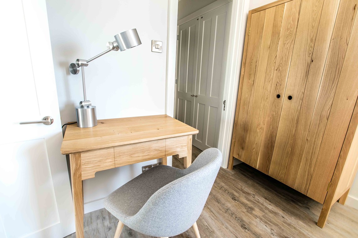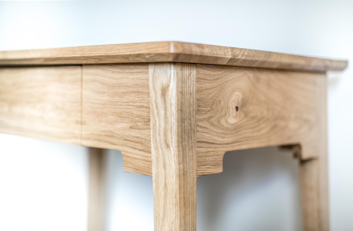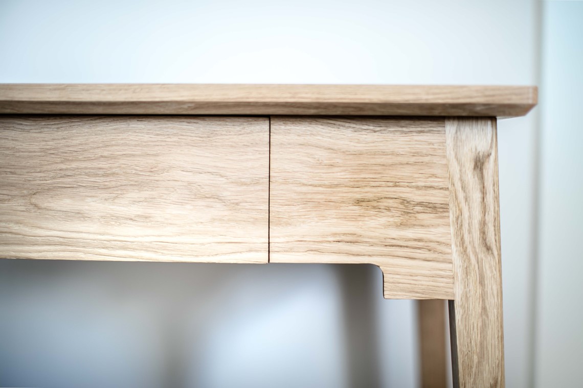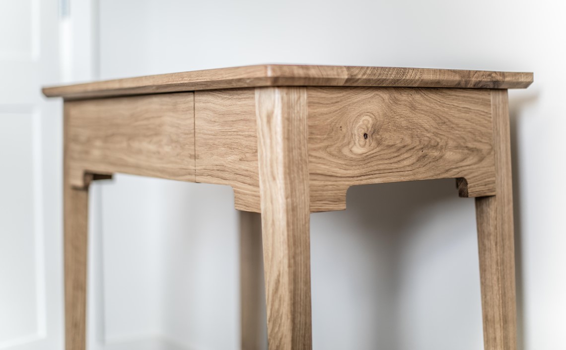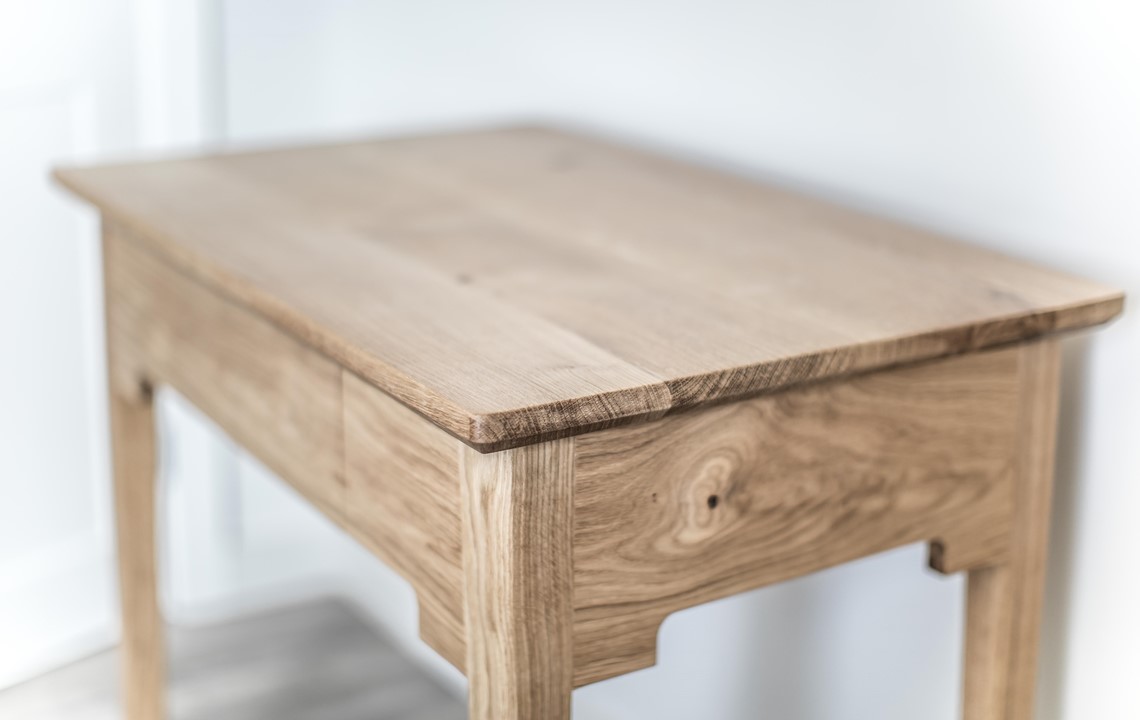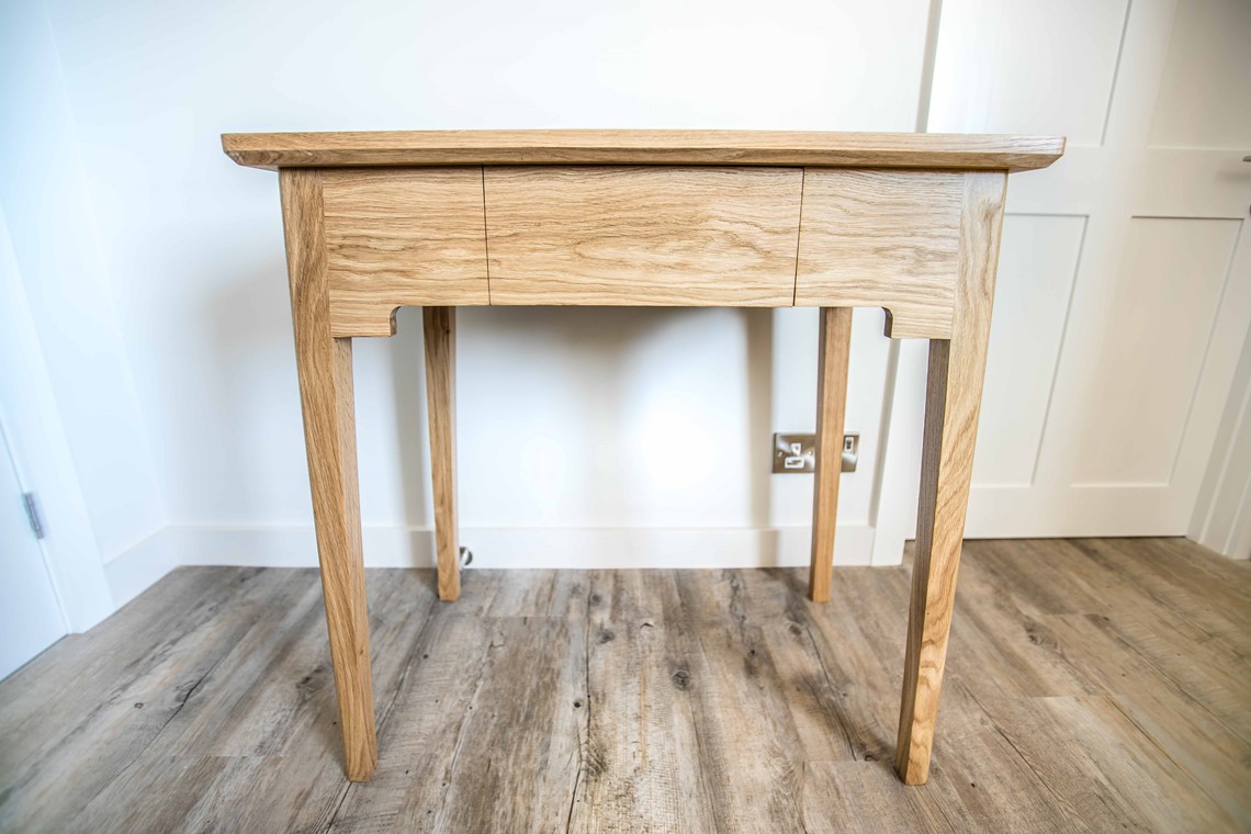 Writing, typing or even paperwork become a real pleasure at this neat wooden desk. This example is made from much-loved English oak; however we can use whichever wood best suits your study or home office.