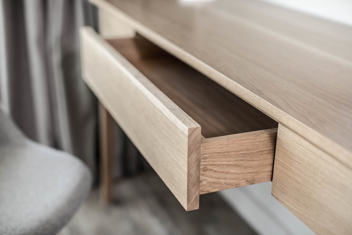 A stylish dressing table with a generously-sized surface and a hint of retro chic. The drawer to its centre makes a handy storage place for all those dressing table essentials.